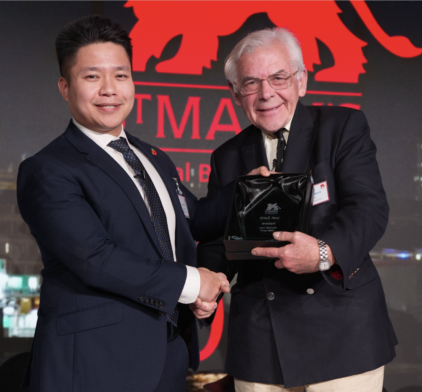 Dinh Mai receiving the John Nicholls prize in 2023